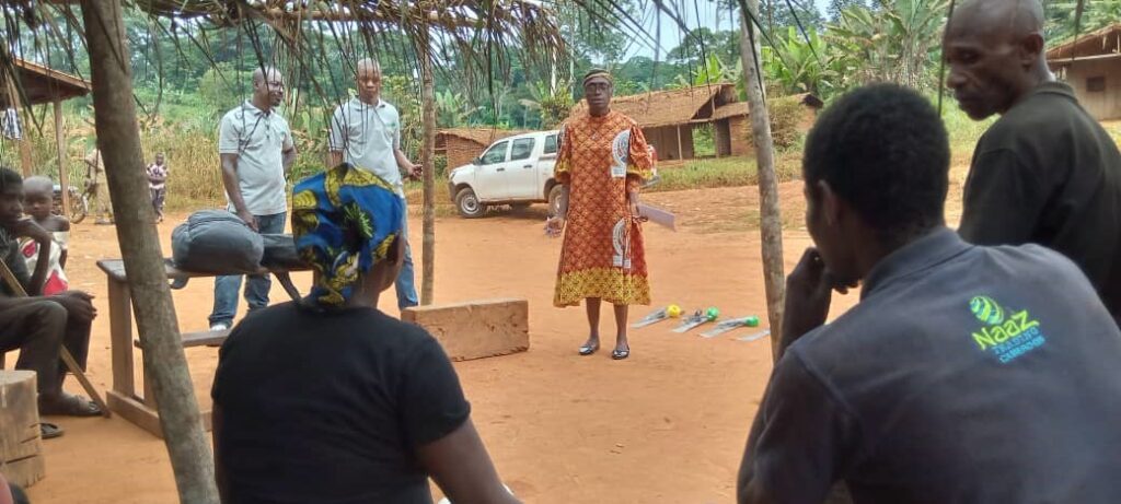 Intervention du Point Focal ARESA Dja, précisant le rôle que joue l’Organisation qu’il représente dans l’initiative AMATIBAA à Djebe Baka dans la Commune de Lomié