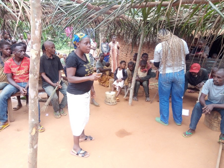 Intervention d’une bénéficiaire pendant la séance de formation théorique à Djebe Baka dans la Commune de Lomié