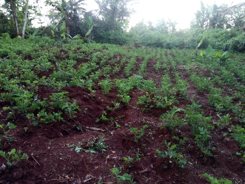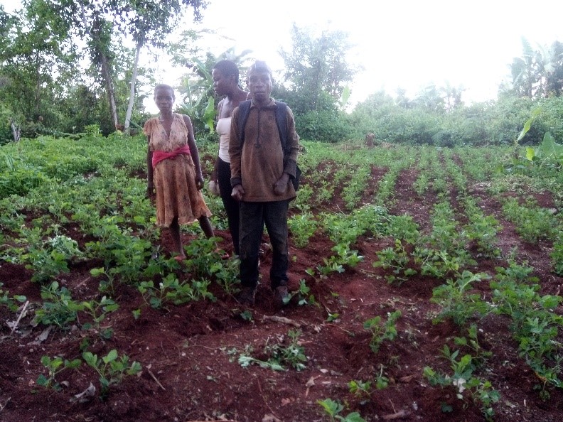 Une famille de bénéficiaires dans sa parcelle d’arachide de variété JL 24 à Menzoh dans la Commune de Mindourou