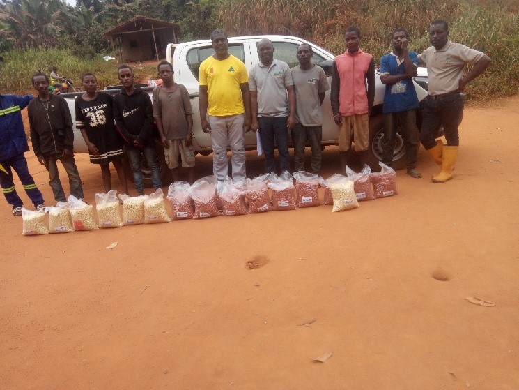 Séance de distribution des semences certifiées à Djebe Baka dans la Commune de Lomié (Crédit photo : ARESA, août 2024)
