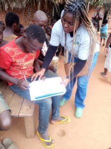 Une responsable administrative ARESA enregistrant les bénéficiaires à Djebe Baka dans la Commune de Lomié